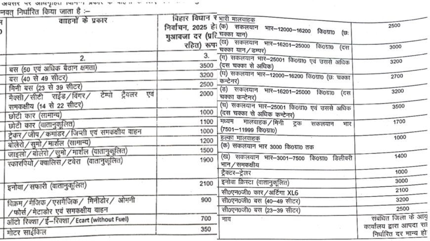 बिहार चुनाव 2025: परिवहन विभाग ने गाड़ियों के मुआवजा दरों का किया निर्धारण,बस से बाइक तक की पूरी लिस्ट जारी
