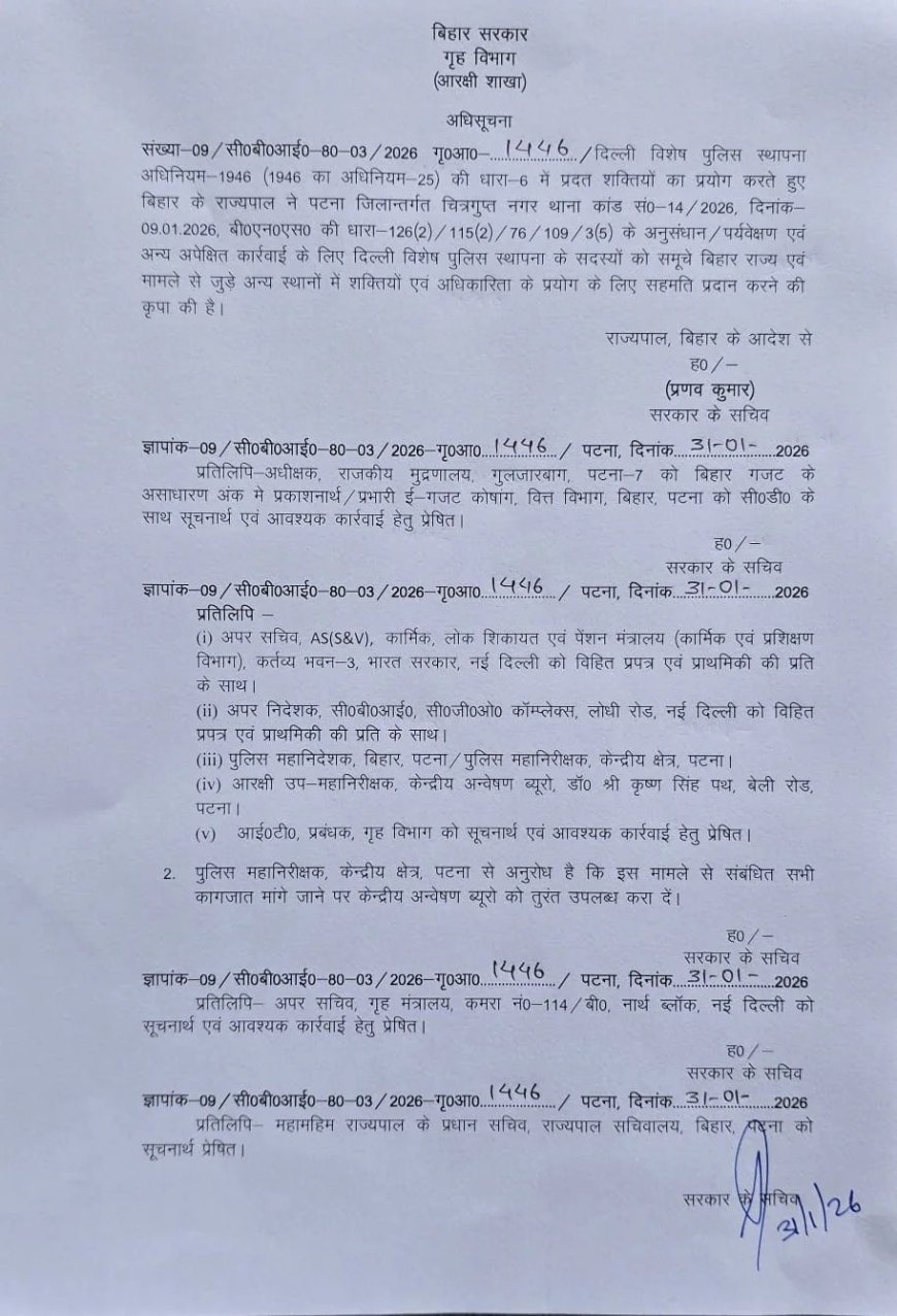 पटना के एक हॉस्टल में जहानाबाद की नीट (NEET) छात्रा की संदिग्ध मौत के मामले ने अब नया और अहम मोड़ ले लिया है। बिहार सरकार ने इस हाई-प्रोफाइल केस की CBI जांच की सिफारिश कर दी है। डिप्टी सीएम और गृह मंत्री सम्राट चौधरी ने बताया कि मुख्यमंत्री नीतीश कुमार ने भारत सरकार से औपचारिक रूप से CBI जांच का अनुरोध किया है।सम्राट चौधरी ने सोशल मीडिया प्लेटफॉर्म पर इसकी जानकारी....