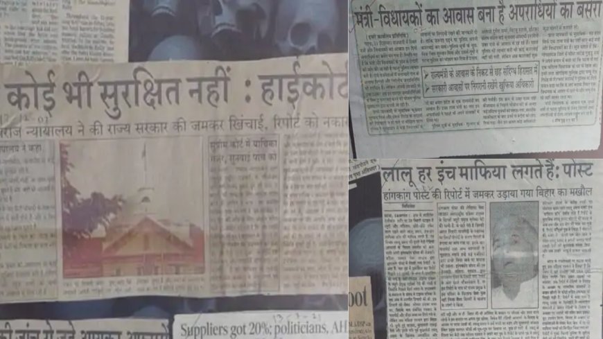 बता दें कि प्रदर्शनी में अखबारों की कटिंग के साथ ही लालू यादव को पोस्टर में महिला का मुंह दबाते दिखाया है। प्रदर्शनी में लालू शासनकाल के अखबारों की कटिंग लगाई है।वहीं अखबारों की कटिंग दिखाते हुए जदयू के मुख्य प्रवक्ता नीरज कुमार ने कहा, 'लालू प्रसाद का शासनकाल जंगलराज नहीं, बल्कि आतंक राज था। ये हम नहीं बोलते तात्कालीन हाईकोर्ट और मीडिया बोलती है। बिहार भूलेगा नहीं लालूवाद का जंगलराज।'वहीं एक पोस्टर में लिखा गया है, वो दौर जब जातीय विद्वेष और बंदूक का शासन था.. भूलेगा नहीं बिहार, वो 118 नरसंहार, जहां इंसानियत रोई थी और सत्ता मुस्कुरा रही थी। नरसंहारों की चीखें आज भी बिहार की मिट्टी में गूंजती हैं। नरसंहार।