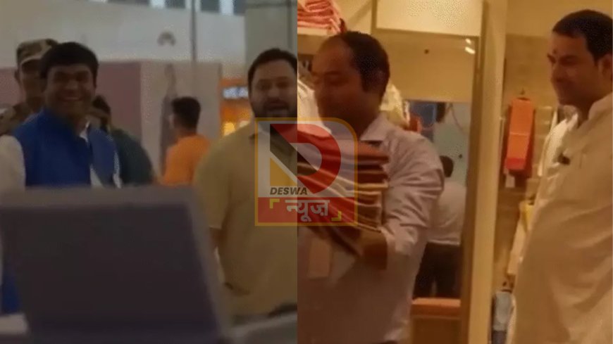 दरअसल तेजप्रताप यादव मंगलवार को अपने हेलीकॉप्टर से चुनावी प्रचार के लिए रवाना होने पहुंचे थे। इस दौरान वे एक यूट्यूबर समदीश भाटिया को इंटरव्यू दे रहे थे। इंटरव्यू के दौरान तेजप्रताप पटना एयरपोर्ट के ड्यूटी-फ्री ज़ोन में FabIndia स्टोर पहुंचे, जहां वे एक काली बंडी खरीद रहे थे।उसी वक्त एयरपोर्ट पर तेजस्वी यादव भी पहुंचे, वहीं यूट्यूबर समदीश भाटिया को देखकर तेजस्वी मुस्कुराए और मज़ाकिया लहजे में बोले, “क्या शॉपिंग करा रहे हैं भइया?” जिस पर समदीश ने जवाब दिया, “वो हमको गिफ्ट दे रहे हैं।” इस पर तेजस्वी ने हंसते हुए कहा, “आप बहुत लकी हैं लेकिन इस दौरान तेजप्रताप यादव पूरे समय खामोश खड़े रहे। उन्होंने न तो कोई प्रतिक्रिया दी और न ही अपने छोटे भाई से बातचीत की। तेजस्वी के साथ इस दौरान विकासशील इंसान पार्टी प्रमुख मुकेश सहनी भी मौजूद थे।