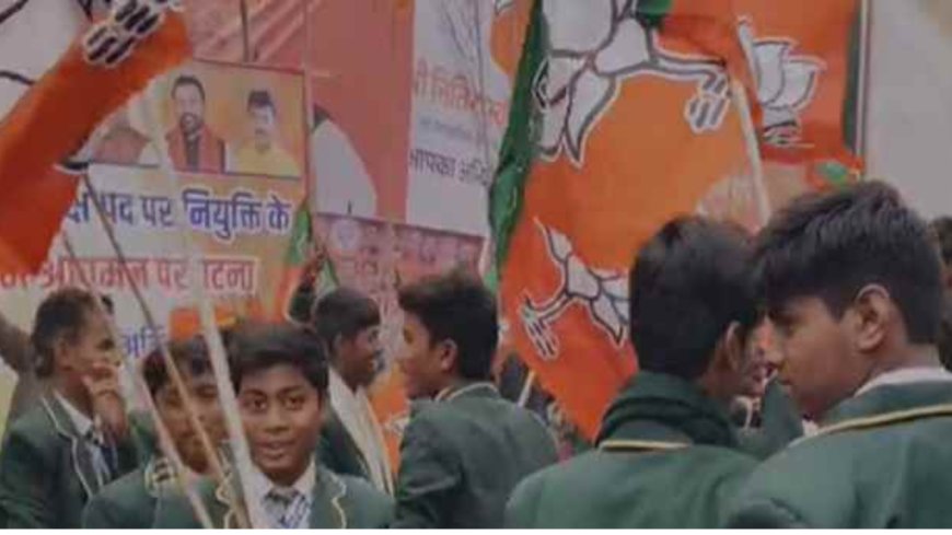 वहीं इस स्वागत कार्यक्रम में एक अनोखी घटना देखने को मिली। एक प्राइवेट स्कूल के बच्चों को कार्यक्रम में बुलाया गया और उनके हाथों में भाजपा का झंडा थमा दिया गया। बच्चे देशभक्ति और वीर जवानों के गानों पर नाचते और गाते नजर आए। स्कूली ड्रेस में आई कार्ड लगाए हुए बच्चे नितिन नवीन के लिए नारेबाजी कर रहे थे। कार्यक्रम के दौरान बच्चे हाथों में भाजपा के झंडे लिए उत्साह के साथ नारे लगा रहे थे।