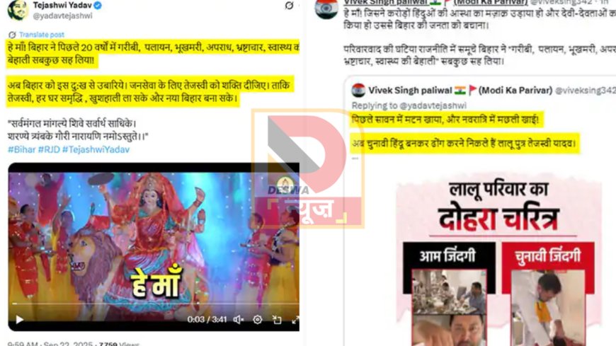 शारदीय नवरात्रि पर तेजस्वी यादव का पोस्ट,यूजर्स बोले- लालू परिवार का दोहरा चरित्र..सावन में मटन खाया
